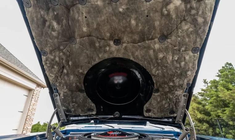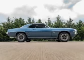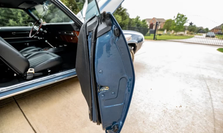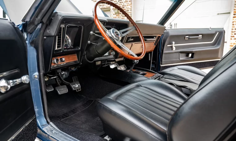 finished in blue over black vinyl upholstery and is powered by a 396ci V8 paired with a Muncie M22 four-speed manual transmission