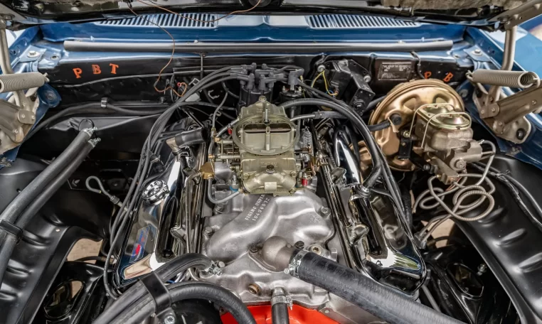 Equipment includes a 12-bolt rear end, a Hurst shifter, and a Delco AM radio, as well as a Holley carburetor, aftermarket exhaust headers, front disc brakes, and 14″ SS-style wheels. Refurbishment work completed under prior ownership included a repaint and an interior refresh, while work under current ownership has included a powertrain rebuild and overhaul of the suspension system