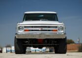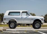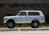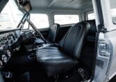 This 1971 GMC Jimmy was modified and refurbished between 2022 and 2023, and work at that time reportedly included the installation of a 6.0-liter Vortec V8, rebuilding the three-speed automatic transmission, a repaint in silver and white, re-trimming the interior, and lifting the suspension and body. Rancho shocks, 15″ polished Ion wheels, 3.55:1 differentials, a Spectre cold-air intake, a touchscreen stereo, and an Old Air Products heat and air conditioning system have also been added. The truck also features power-assisted front disc brakes, power steering, a white removable hardtop, a Chevrolet C10-style hood and grille, and a dual-range transfer case.